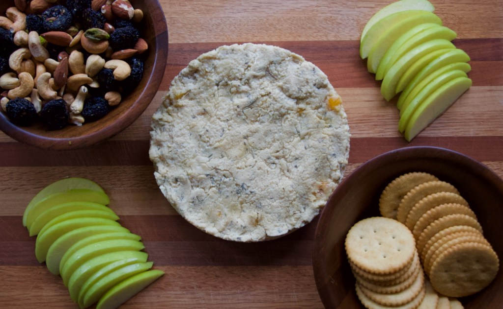 Smoky and creamy with herbs and dried fruit, this celebration cheese was inspired by the fancy cheeses often enjoyed at holiday parties. I thought it would be fun to share it with you now that school and work are starting again, so that your families have a little something festive even as we all return to a more normal routine.
