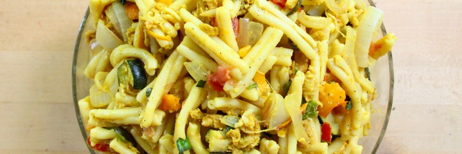 Lemon garlic pasta with roasted veggies and soy curls (vegan)